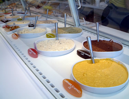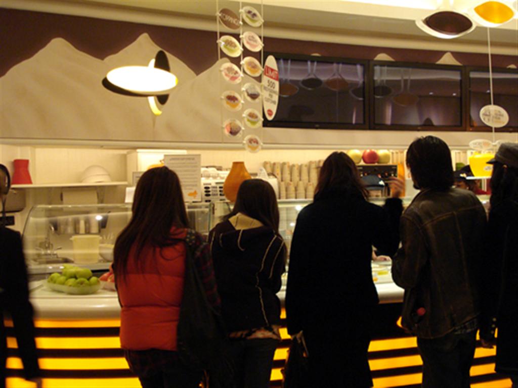 櫃檯擺放了像賣雪糕的冰櫃,裡面是一桶桶的米布丁,乍一看像很濃的稀飯,因為他們出售的是新玩意,所以歡迎先試食,店員會以你選擇的口味,給你一小湯匙品嚐一下。