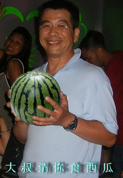 大叔,你个东瓜母西瓜吖,好丝白囊多D互,可虾米来煮区啦,吾信你切开睇红母白