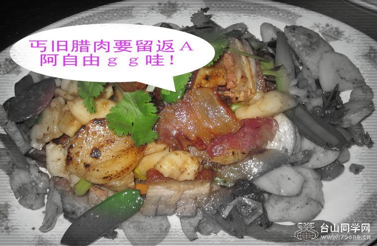 阿平凡老兄, 勿个锅未洗得净依莫? 炒成巧黑墨墨呵? 睇见自冇西胃口鲁! 好彩挽有返镐腊肉吃吓! 阿三C仔穷碟自好色水乃咯!等呆跃整返笼发糍给你尝一吓依,彩虹MM,乃发糍发吗?