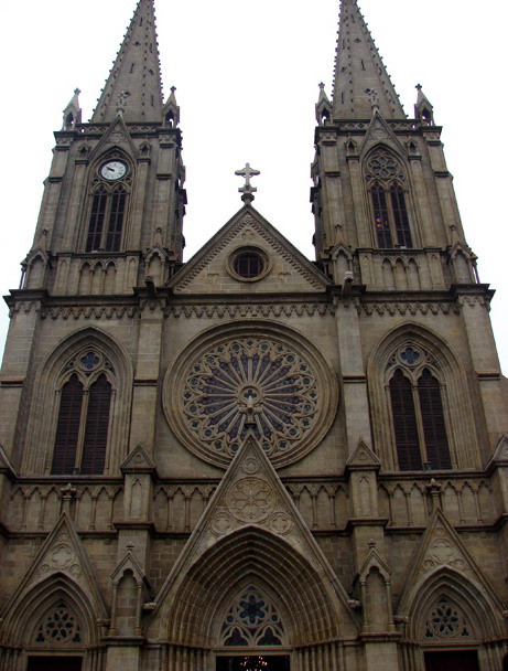 广州的石室圣心大教堂位于广州越秀区一德路的清末两广总督衙门旧址上。本名圣心教堂,始建于同治四年(1863),于阳历628日圣心瞻礼日奠基兴建,故取名圣心堂,于光绪二十五年(1888)落成,是东南亚最大的石结构天主教建筑,也是全球四座全石结构哥特式教堂建筑之一,是广州天主教活动场所,因整个建筑都用花岗石砌成(这些石料均采凿自香港九龙,用帆船运到广州),故又名石室,规模宏大,造型雄伟,为中国第一高大天主教堂,并称著远东。1996年被国务院公布为全国重点文物保护单位。但由于经历了114年的风雨侵蚀和历史事件冲击,石室大教堂已损坏严重。20047月,维修工程开工。