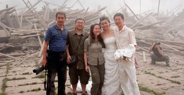 拍婚纱照时地震了:5.12地震彭州白鹿纪实[图]