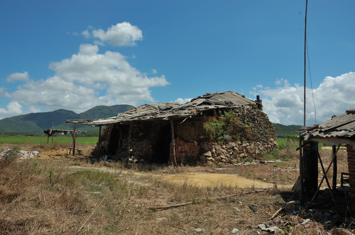 刚过大同桥往隆汶方向不远,我们见到了一些砖窑窝棚,和制作砖瓦的广西朋友。