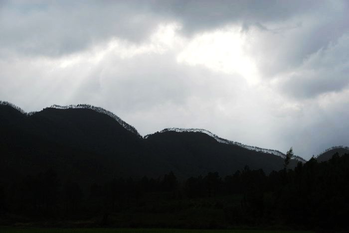 行色——看不见的山 昨天,台风为台山带来不小的雨。我通知几位发烧友下午出发,太阳就出现了。 整个下午,几乎是大雨磅礴,正在怀疑自己的决定时,我们已到目的地,蓝天白云就灿烂地出现了,我们的雨伞基本上是用来遮阳的。 一路沿着老五哥的足迹,在两边清秀的树荫下前行,深呼吸着雨后的清新空气,感觉人如大雁在空中飞翔,就在这时,真的从林中飞出一只白鹭,缓缓地贴着水面滑翔,或许是在寻觅可口的鱼儿?我们又在寻觅什么?