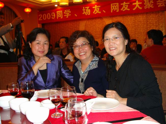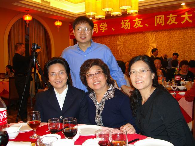 [尉蓝兄:你好!此相片中前排左边就是梅氏妹妹--梅红.今次大聚会非常多谢同学.场友.网友及社会各界人士的热情参与!