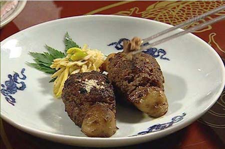 《大长今》九大诱人美食(组图) 鲍鱼内脏粥,因为吃了很多新鲜海草,内脏发出浅浅绿光,是来自大海的精华 在韩尚宫和崔尚宫第1道菜的对决中,长今煲的“海鲜鲍鱼粥”被金英熬的“五子粥”打败,但还是骗了观众一地口水。 如果鲍鱼粥算得粥中精品的话,那么用鲍鱼身上的“宝物”———内脏来熬粥,大概可以称作“极品”了。和中国人清水下米,再加料的熬粥的方式稍稍有些不同,韩国人习惯先把“内容”用少许的油翻炒几下,再下米加水。而且米也不是整粒的,先期经过研磨粉碎,熬出的粥更细腻滑爽。 “五子粥”则加入了芝麻、核桃、葵花子、松仁和杏仁。之所以“海鲜鲍鱼粥”不敌“五子粥”,是因为当时皇太后的胃口不好,“五子粥”正好可以助其消化,增进食欲。 牛肉包的烤松茸,在日韩,松茸非常之珍贵,上好的牛肉只有贵族能吃到。 帖子相关图片: