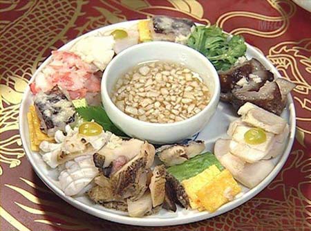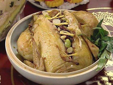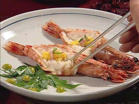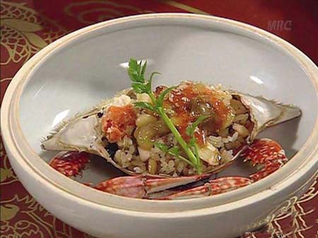 韩尚宫和崔尚宫争夺最高尚宫宝座的第3次较量,恰逢皇太后生日。她要求两宫做出各自的看家菜进献皇上。韩尚宫遭崔氏家族绑架,只剩下长今和连生应战。面对突如其来的挑战,长今发挥创造极限,烹制出7道美食,赢得最终胜利,成为最好的御膳宫女。海鲜鲍鱼粥、荞麦卷饼、鱼片生菜、松茸烤牛排、伏龙肝烤嫩鸡、石锅凉菜拌饭、红枣打糕……让皇太后目瞪口呆。 其中尤以松茸烤牛排“打头阵”。松茸和上等牛肉,是只有富贵人家才享用得起的美食。牛排原是一大块,食用起来不方便,长今将其“改良”成薄片,包裹在长折山出产的松茸外面,烤至落日红。牛排吸收了松茸的香气,松茸的清爽又调和了牛排的荤腥。 帖子相关图片:  蒸醉虾 大明虾用料酒醉晕,背部开刀蒸熟。营养成分原封不动地留守在了虾肉里面。在酒的作用下,虾肉尤其 帖子相关图片:  蟹膏松仁饭 宫里人精贵,吃饭不便剥壳吐核,去骨的步骤皆由长今代劳,连蟹这种吃起来“兴师动众”的食物,经过长今的巧手,也简化为张嘴、吞咽。将鲜活的整只膏蟹蒸熟剃肉,和饭、松仁拌匀,填回蟹盖,再铺上精华———蟹膏,原汁原味,卖相又好。 帖子相关图片: