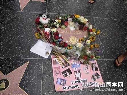 适逢美国歌星米高.杰克森(Michael Jackson)离奇逝世一周年,他的歌迷影迷在他的那颗星星献上鲜花纪念这位巨星