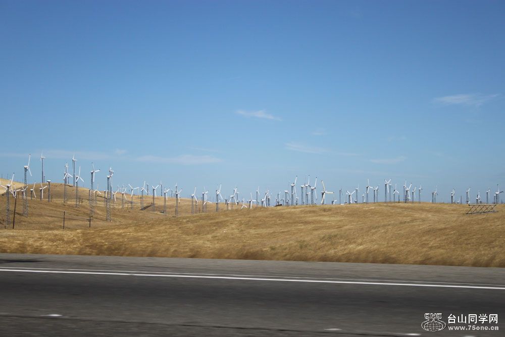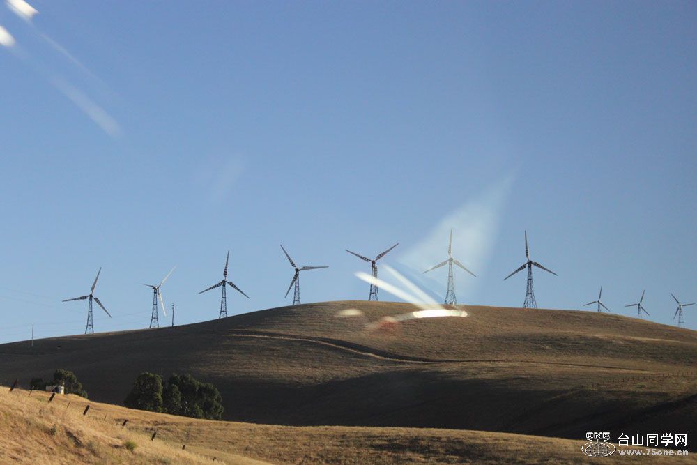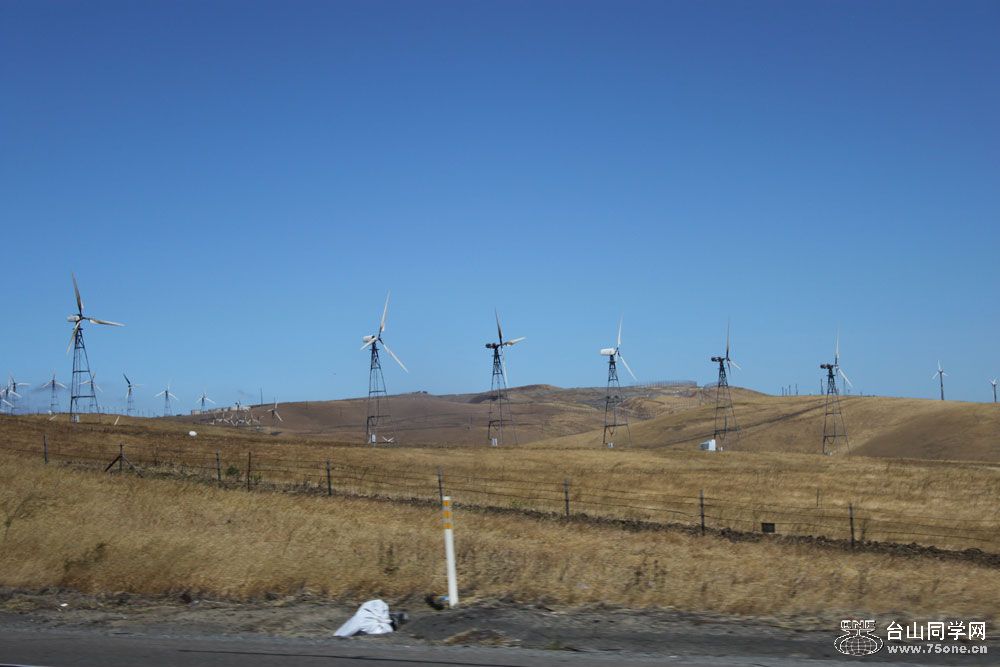 这次我开车经过风车山,看到这里满山是风车,系加州环保电力的一部份。