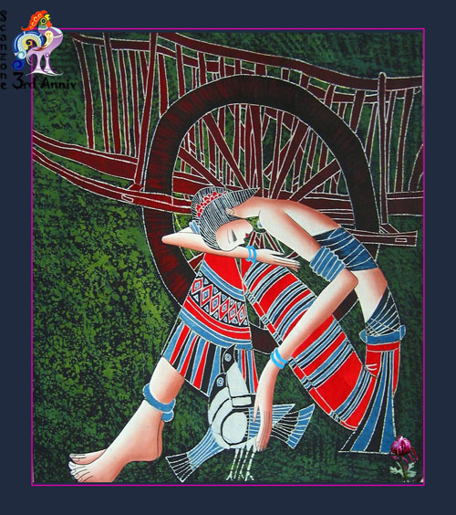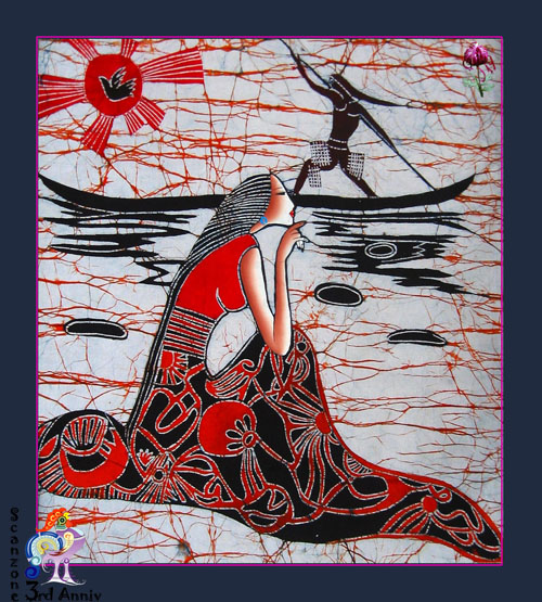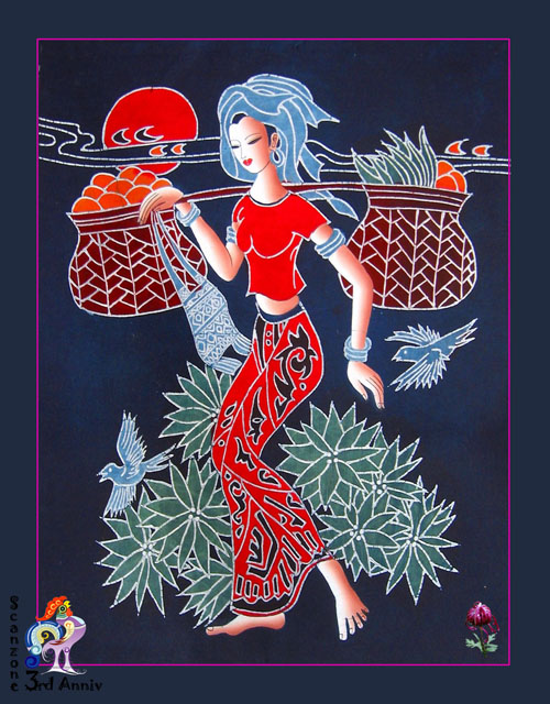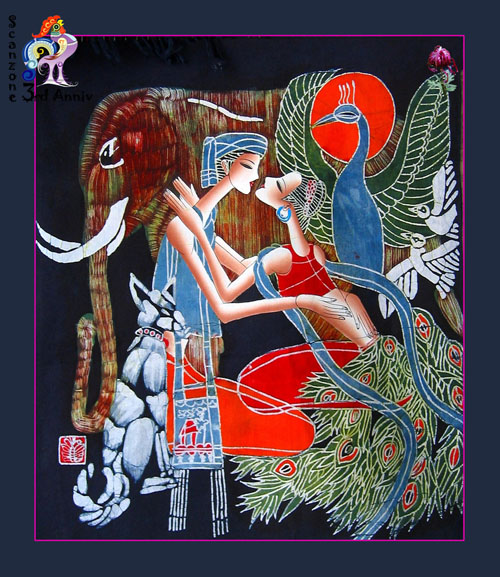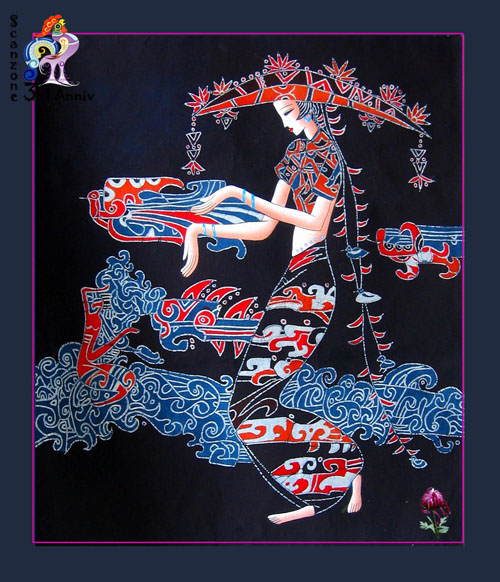 蜡染的制作方法和工艺过程: 1、 画蜡前的处理-先将自产的布用草灰漂白洗净,然后用煮熟的芋捏成糊状涂抹于布的反面,待晒干后用牛角磨平、磨光,石板即是天然的磨熨台。 2、点蜡-把白布平帖在木板或桌面上,把蜂蜡放在陶瓷碗或金属罐里,用火盆里的木炭灰或糠壳火使蜡融化,便可以用铜刀蘸蜡,作画的第一步是经营位置。有的地区是照着纸剪的花样确定大轮廓,然后画出各种图案花纹。另外一些地区则不用花样,只用指甲在白布上勾画出大轮廓,便可以得心应手地画出各种美丽的图案。 3、染色-浸染的方法,是把画好的蜡片放在蓝靛染缸里,一般每一件需浸泡五、六天。第一次浸泡后取出晾干,便得浅蓝色。再放入浸泡数次,便得深蓝色。如果需要在同一织物上出现深浅两色的图案,便在第一次浸泡后,在浅蓝色上再点绘蜡花浸染,染成以后即现出深浅两种花纹。当蜡片放进染缸浸染时,有些"蜡封"因折叠而损裂,于是便产生天然的裂纹,一般称为"冰纹"。有时也根据需要做出"冰纹"。这种"冰纹"往往会使蜡染图案更加层次丰富,具有自然别致的风味。 4、去蜡-经过冲洗,然后用清水煮沸,煮去蜡质,经过漂洗后,布上就会显出兰白分明的花纹来。 制作彩色蜡染有两种方法:一种是先在白布上画出彩色图案,然后把它"蜡封"起来,浸染后便现出彩色图案;另一种方法是按一般蜡染的 方法漂净晾干以后,再在白色的地方填上色彩。民间蜡染所用的彩色染料,是用杨梅汁 染红色,黄栀子染黄色。贵州蜡染的图案,一是古老纹样,例如与贵州铜鼓有关的光纹、锯齿纹、图纹、瓜米纹、云纹、雪纹、线纹、花纹、花瓣纹、鸟纹、鱼纹等;二是与汉族文化交融形成的纹样,如蝙蝠纹、石榴纹等;三是取自大自然的美好景物,如花草、树木、鸟兽、鱼虫等纹样。色彩以蓝色为主。蜡染的"冰纹",类似瓷釉之"开片"极具艺术效果。裂之大小走向,可由人掌握,可以恰到好处地表现描绘对象,特点鲜明。要染多色彩层次的花口,可采用分色封蜡的手段,表现力更丰富。现在蜡染多用于制作工艺服装、壁挂、台布等。苗族擅长蜡染。 [此帖子已被 you-fs 在 2006-4-15 17:26:01 编辑过] |