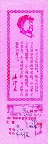 翔同志,我们订于67年8月16日举行婚礼茶点恭请光临......
