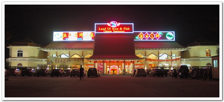 侦察兵:鱼米之乡可以说是台城最靓的酒楼了,只可惜我的镜头不就(不够广角)所以没敢拍大堂和主厅。由于夜晚又没带脚架只能拍成这样了,别人拍也许更靓。