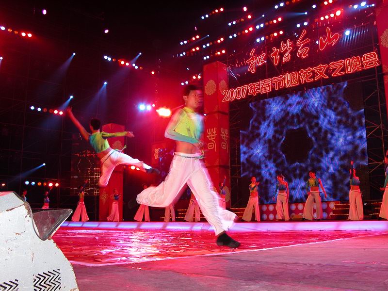 这场晚会演出的节目精彩非凡,既有独唱、组合演唱、还有群舞和烟花表演。舞台策划、灯光设计、音响配套,更使晚会锦上添花。谢晶晶的谐趣演出、广州歌舞团的大型歌舞合着烟花燃放、黄虹的倾情高歌《放歌台山》、以及领军级歌唱家田震的登台高歌更是把晚会推上了群情激昂、欢声雷动、掌声此起彼落的一浪又一浪的高潮。