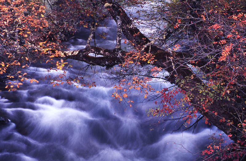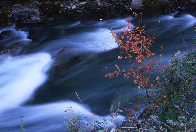 我拍的时候只是感叹红叶飘零,水流急湍,时间飞逝,相机可以捕捉住水的动态,凝结瞬间成永恒。