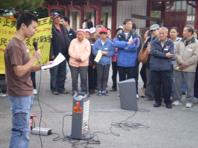 過去四年來一直反對美伊戰爭的華人進步會,16日晚上配合在華埠花園角舉行一項反戰集會,除了華裔外,拉丁裔移民及勞工團體也參加當晚的反戰活動。
