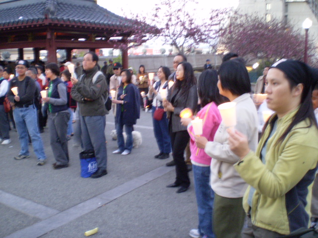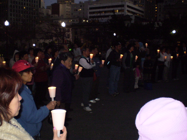 3月16日晚上6﹕00--7﹕30,在三藩市華埠花園角,舉行一個由華人自己發動和組織的反戰燭光晚會。四年前,美國發動了伊拉克戰爭,結果是﹕用超過3000條美國年輕人鮮活的生命和4000億美元的代價,推翻了薩達姆政權。當初以尋找大規模殺傷武器的藉口在現實面前再也無法自圓其說。拉丁西班牙族裔社团也参与集会和烛光悼念因战争牺牲的无辜民众 。3月18日(星期日)中午旧金山全市将举行大规模反战示威游行。因为旧金山是美国民主党的根据地,旧金山选民80%以上都是民主党选民。当今美国第三号人物、美国国会众议院女议长普洛西就是来自旧金山选区。民主党掌控国会两院,并主导从伊拉克撤军主张。与布什共和党政府唱对台戏。