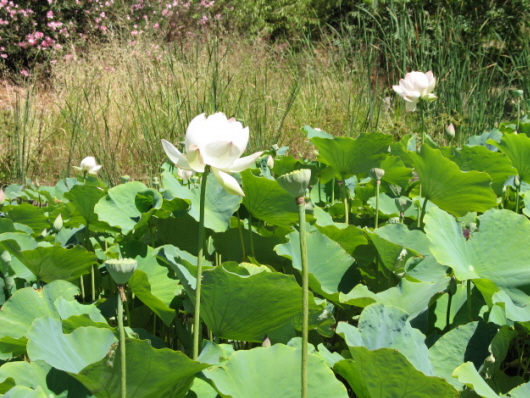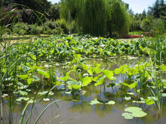 這里有方凈土 久聞附近有個蓮園,算起來正是花開季節.盛夏的一個周末,我們決定駕車到此地一游. 蓮園地處加州中谷地帶,隸屬Stanislaus縣,Modesto市郊.它坐落在山坡上,旁邊一條寬闊清徹的小溪,平靜的淌過,溪水從遙遙可望的Sierra Mountains雪山溶下,不辭辛勞,一路宛延而至,滋潤著兩旁農庄的田野. 蓮園占地頗大,估計不下百英畝,在山坡上開辟而成.上方山坡種植桃果,中部平整后修成巨大的草坪,交錯著:綠柳成蔭,繁花似錦.周圍蓄水成塘,種有數十個品種的蓮花.下邊匯成一個大湖,內有小島.園內建有小橋水榭,亭台廟宇.茶寥飯館.環境幽靜,游客稀少,十分宜人. 此處的主人是臺灣的一對夫婦,因車禍已故,現由其三名土生儿子掌管,他們有自已的職業,只在周末兩天開放,免費供游人參觀.園內設施有些破落和荒廢,有些還未完工,但單憑私人綿薄之財力,已算不錯.讀過豎立在園內的碑文,略知這一家子的事跡,感人至深.這對台灣夫婦,早年由大陸遷台,再移居美國,他們愛蓮向佛,拼于抵足,買下這片荒山野岭,用二十多年時間,辟山造湖,建亭筑廟,養蓮植柳,種果栽花,打造出這一片凈土,立意宏揚中華文化,供中外游人參觀.不料事業未競,心愿未成,夫婦二人因車禍不久相繼去世.其后三名儿子繼承父毋遺愿,用業余時間,把蓮園維持下去,故才有我們如今的蓮園之行. [此帖子已被 louie 在 2008-12-12 19:05:49 编辑过] |