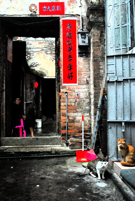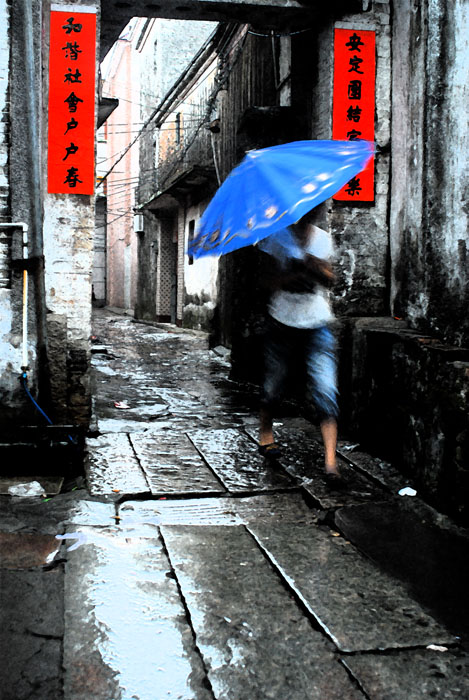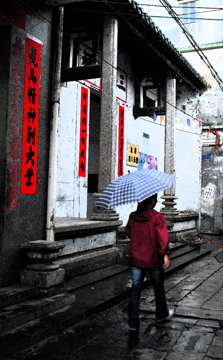 感觉汶村的巷道窄窄的,有的甚至还打不开伞。