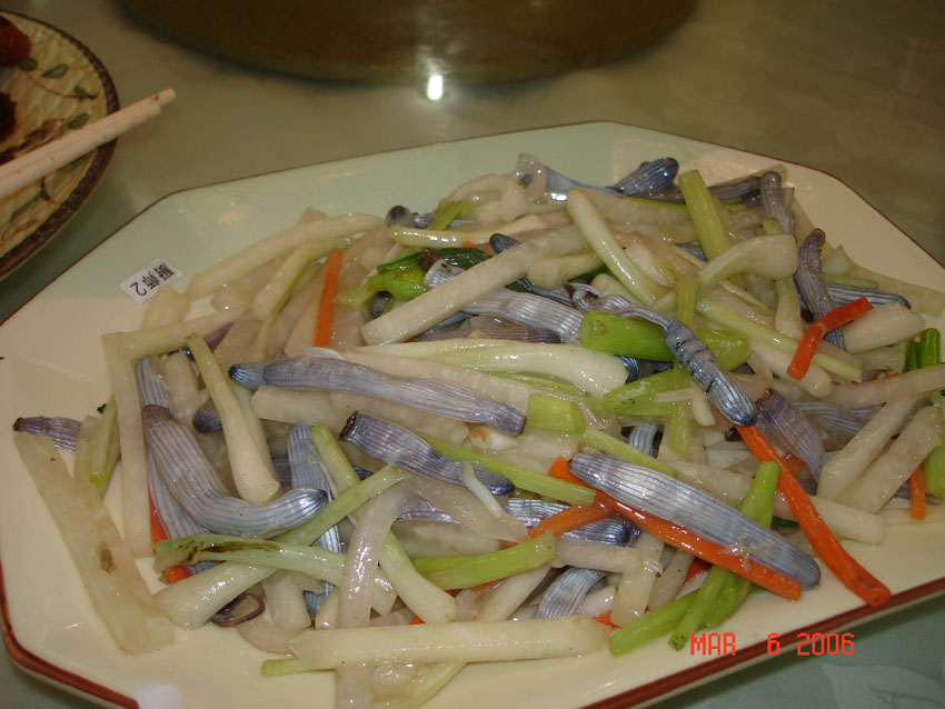 嘻~~我自告奋勇一边做菜一边吹毛裘疵讲解惊喜上传的菜谱吧.第一道菜叫做:宠爱有家福满堂.所做的材料是:沙虫,台山菜果,青椒红椒,荞头.