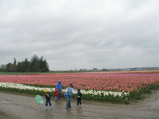 四月天美加各地都有郁金香花展,各有特色。绿草拍回的场面就很有代表性,一般都成为当地老百姓的一个民俗活动,多多少少跟荷兰移民有关。室外种成片的也是展览的一部份,他们是留在地里让人看的,在荷兰花园附近的花带的规模之巨大,只能用“震撼”两字来形容。从跑动的车窗拍到的景物远远不能反映出真实的情况,用自己双脚走进花田,亲身感受美妙时光,是大多数匆匆而过的游客难于实现的梦想。