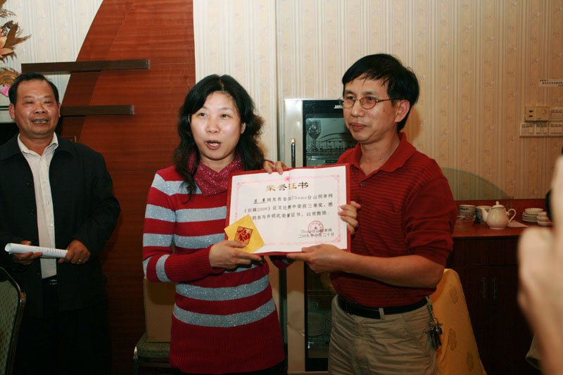四哥宣布2008征文比赛颁奖,同时感谢一位热心的不留名的网友捐助在园林酒店举行的暨新春联欢会之费用.