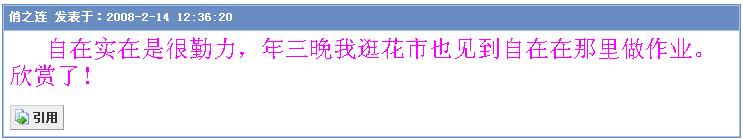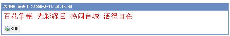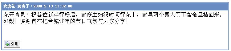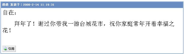 自在GG:我上来同你拜年,顺便在你处可一束桃花返去屋企,等今年行桃花运喔。舞夜丽人:你今年一定行正桃花运啦!顺祝你身体健康!一帆风顺!桃花运到!