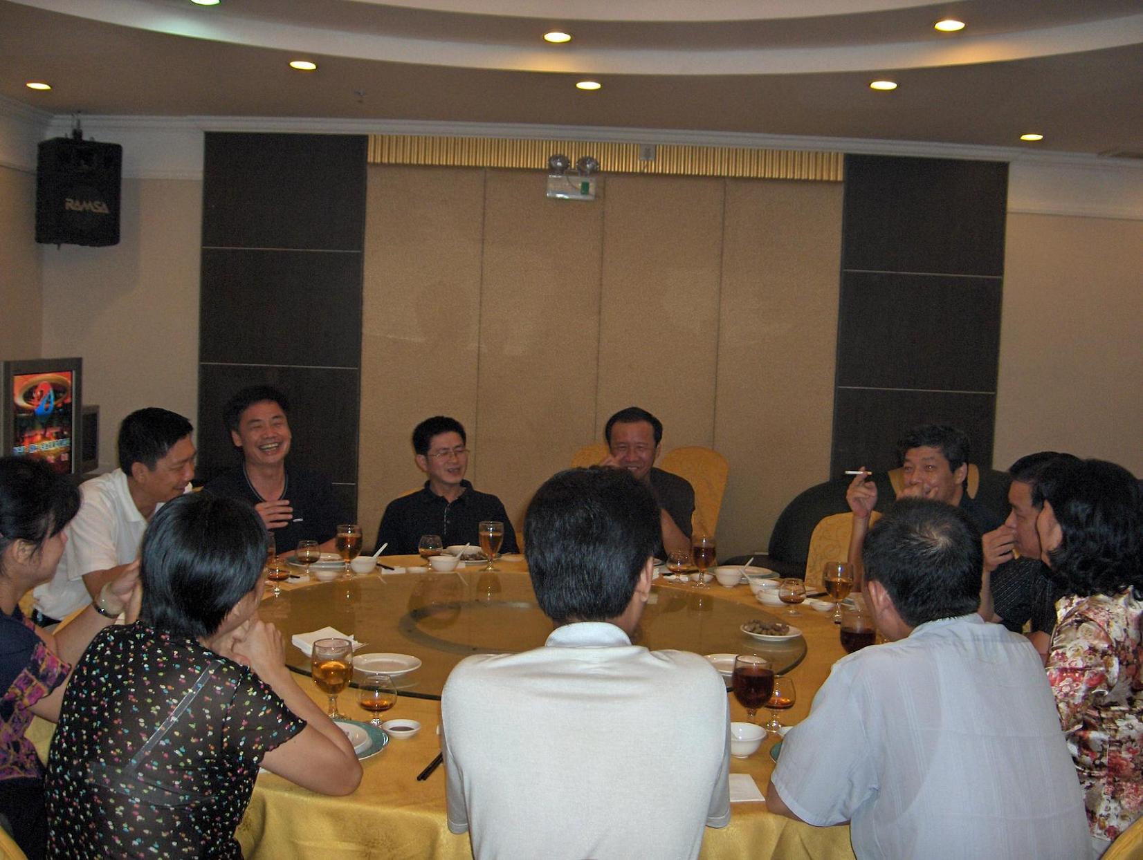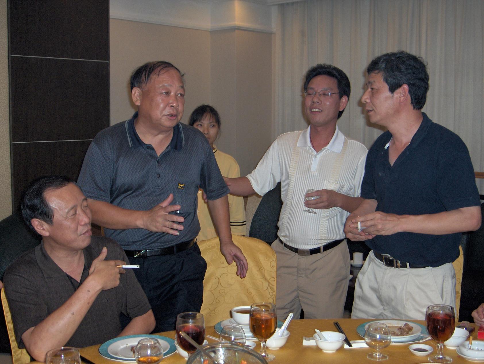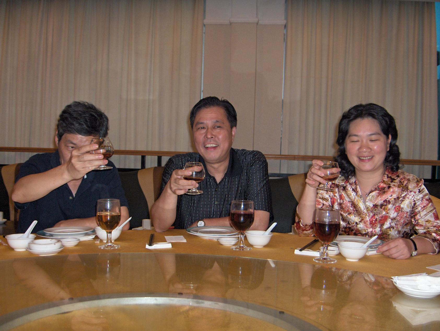 祖国发展回新月异,老鸡返唐山感怀甚多.这天忽闻老友谢总传讽,说是县官大人有意会见老鸡一干人等.想姓老名鸡的乃一介草民,一生平谈,虽无过失也无建树.这宁城已在最近转县为市,这县太爷实是州府大人也,老鸡诚惶诚恐,只好相约死党十余众相伴左右,是福是祸,见机行事. 拜见的州府大人,竞是童年相识.长江后浪推前浪,老鸡感叹不已.感激涕涟之余,更举杯祝州府大妹子当好父母官,事业有成,更祝台山市在众新领导带之下突飞猛进,把台山建设得更美丽富强云云... 相见甚欢.