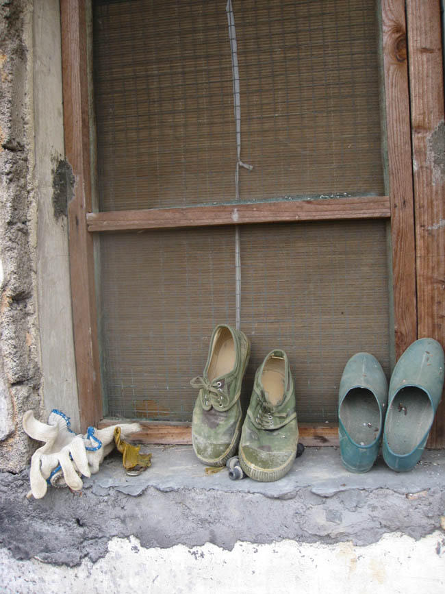 西区知青场宿舍窗台上留下的布鞋、劳动手袜