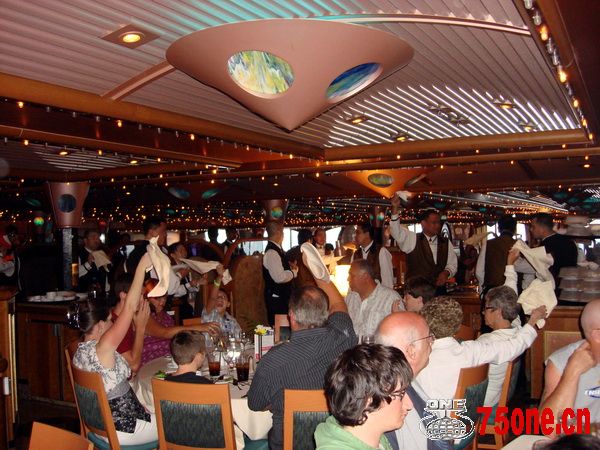 法国大餐,我个人认为法国的面包非常美味,不必说风靡全球的羊角面包, 就是最普通的长棍似的面包条也很好吃。 还有法国的葡萄是世界一流,象翡翠一样绿,却一点不酸,又甜蜜又饱满, 难怪法国葡萄酒世界第一。 那晚上,我喝了半杯酒,赶快去睡觉, 在岸上溜达了一整天,说不累是骗你的。