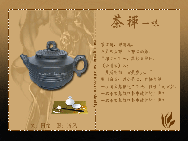 居士有礼,居士能悟道解意,佩服!在茶道与禅语的引用,往往可启悟人的慧性,也会帮助人们对茶道内涵的理解,并使人们从中得到悟解的无穷乐趣,这就是\"茶禅一味\"的意境所在.你已经闻到茶香和品出禅味了,一切随意,一切随缘吧!願你学有所成,得道弘扬.