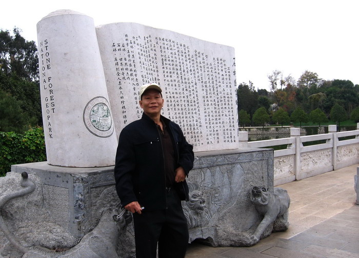 云南旅游的第二天, 我们吃过了很间陋的早餐(我们已好久都没有尝试过这样间陋的早餐好久了)我们的真由美说得好, 就当我们这几天来了个减肥团吧! 还好! 我们的几个\"竹呏\"还能吃得下! 我们这班老嘢都是曾熬过来的! 也就没所为了! 早餐后又是几个小时的车, 一行人就来到了大理的石林, 也就是我们今天的旅游景点, 这石林还有大石林小石林之分! 大石林就是以石山为主, 在石山里就有各不同形状的石头! 个不同形状的石头天然而成不同的形态, 这整个石山都是天然而成的真的可为壮观! 各中各样的石头, 自古以来就有好多不同翰林墨客, 对各个不同形像的石头都作过不同的比喻和赞美! 可我们的导游却说得好! 各人清醒我独醉, 各个角度有不同的观像! 总之你说像甚么它就是甚么! 好! 我说它像甚么它就叫甚么! 今天我来到这, 它得听我! 走马观花的我们的到游只给了一个多的小时我们, 我想就算是再给几个小时我们也走不完这整个大石林! 我们照相的照相,看表演的看表演,一行人对了表后就分开了!我们几个在各个角度照了一些相,就沿着那一条条的小道就往最高的石山上爬!一路照相玩个够.你看我们的真由美还走进了那帮小数民族的表演者里跳个够呢!