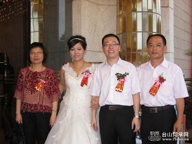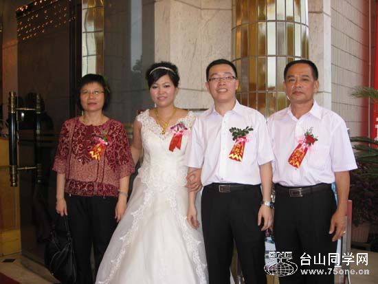 左一是沙岗湖农场衣车队的刘琼秀,右二是儿子偕新娘,右一是阿秀先生