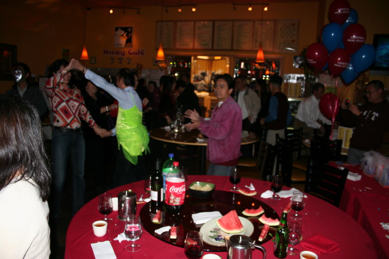 一覺醒耒,原是如此的绚麗多姿、精釆、熱鬧。 多謝各位上傳這麽多的靚相,多謝各位參與盛會的老師、同學、網友、朋友,更多謝為筹劃今次聚會的一眾台前幕後人員。 盡管大风大雨,因為大家的積极參與,聚會終能取得完滿成功! 今次盛會,又带耒了惊喜: 聚會開首,由與會者逐一起立自我介绍,各自的表述,引發满堂歡笑、陣陣掌聲。 接着,由DJ打碟,進行卡拉OK比賽,并由MC給第一、二、三名頒發獎牌、獎品,将聚會推向高潮。 同時,為壽星女陳同學齊唱生日歌、切蛋糕,盡現同學情。 随着音樂一轉,DJ将大家带進了強劲的迪士高節奏,當晚主題---化粧、扮嘢舞會上映,還有迪士高、喳喳、倫巴、...等等, 迪哥、喳女、巴后、扮粧大王相繼誕生,攪笑叠出,場面熱閙温馨。 夜深了,凌晨了,聚會在一曲\"友誼之光\"聲中完满结束。 雨停了,风小了,聚會的人在互道珍重說再見。 再見,Quincy!再見,Boston! 再見--二○○七年三月二十四日僑中美東校友會春節聯歡!再見--紐約!