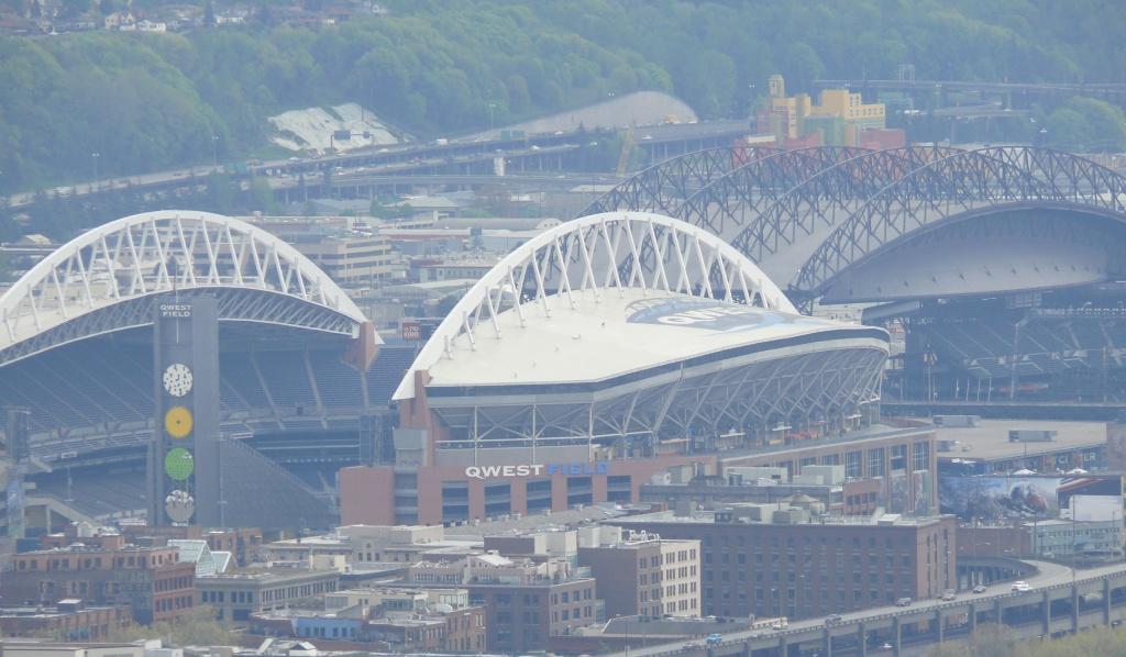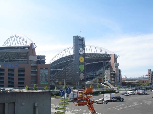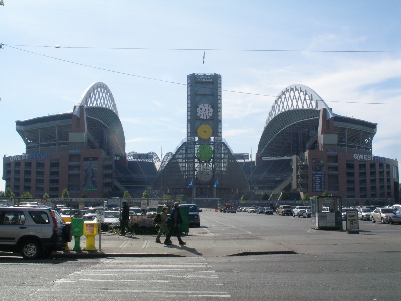 榄球场 QWEST FIELD 前身是一座旧式钢筋水泥建筑的体育馆,名字为 Seattle Kingdom Field (西雅图国王体育馆), 始建于1972年11月2日,完工于1976年3月27日,耗资6千7百万元,那时候两种球赛合用这个场地。往往在赛事旺季的时候,因场地调动排期费时误事,于是,在1997年3月8日,在国王体育馆旁边动工兴建名为 SAFECO FIELD 的棒球场,耗资5亿1千7百60万,竣工于1999年7月,7月15日举行笫一场球赛,可容纳4万7千人到5万4千人数,内设座椅47116张。 新的棒球场(SAFECO FIELD)落成,显得国王体育馆落伍了。