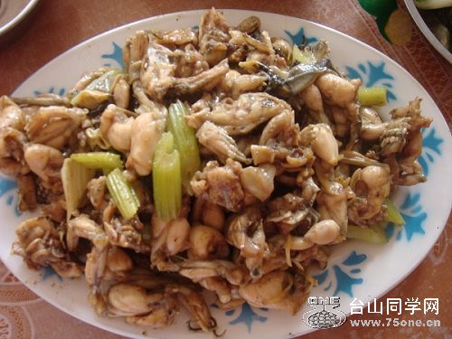 由美mm:乜你丐碟田鸡唔放几粒花生落去炒呀?