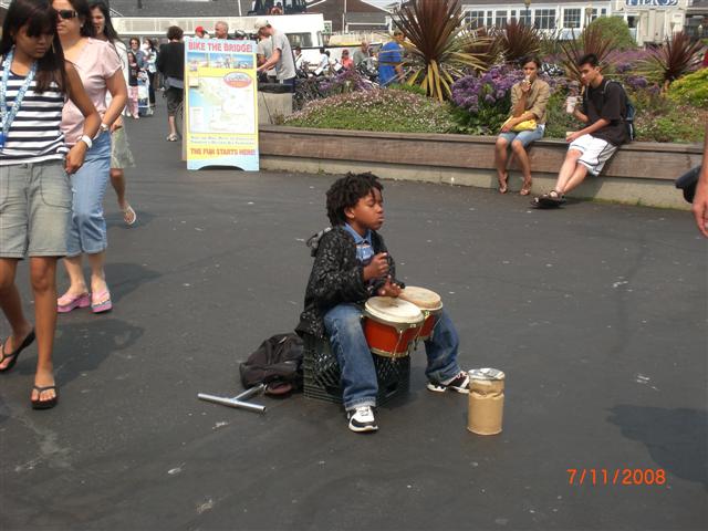 渔人码头里面表演的小男孩。