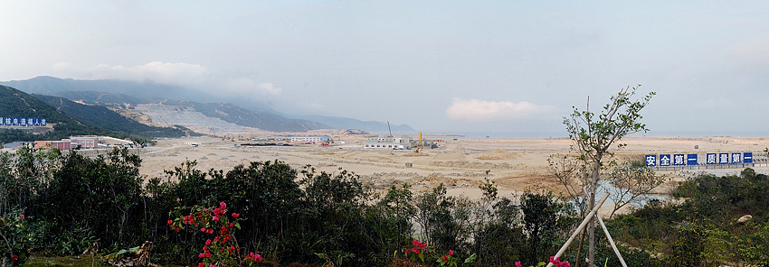 昔日绿色幽静的腰鼓村,已经变成了一片黄土。这里在建的是台山核电厂的核岛基址。