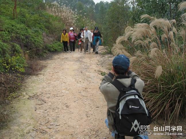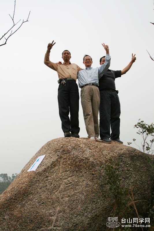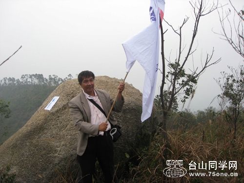 “自在”爬上岭顶后,以理事的身份举着同学会会旗充满自信