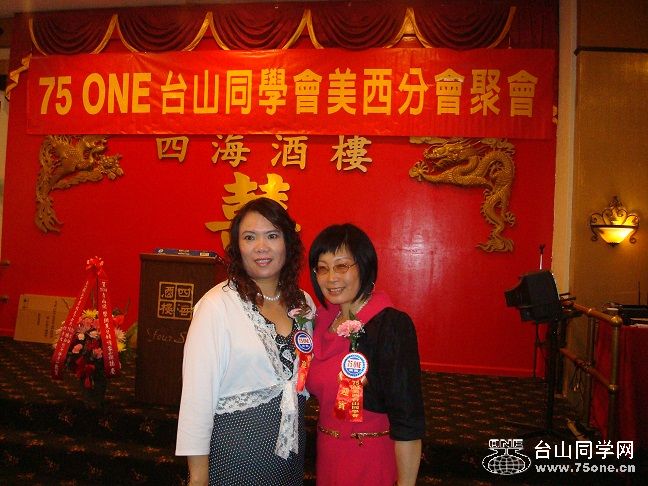 有幸与台山一中老三届李丽红姐合照(Laotao学长的胞妹,是湾区屋伦李家园酒楼的老板)。[/quote 喜见清一色jj和Deanna合影的相片,也分享了你们聚会的喜悦,并祝聚会圆满成功!多谢Deanna的精彩报导.