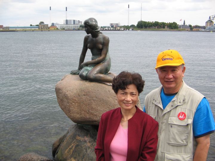 Laotao:人比铜像靓。当然!要说明:相片是原创,在丹麦拍的。有相为证:
