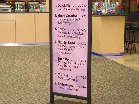 6.拉斯维加斯--购物(Shopping )拉斯维加斯是购物的天堂。从价廉物美的小商品到世界顶级名牌时装,各种商品一应俱全。如果你想买高档时装或精品,你可以在凱撒皇宫酒店里(Caesars Palace Hotel)的古罗马购物中心(The Forum Shops )、位于威尼斯人大酒店(The Venetian)内大运河购物中心( The Grand Canal Shoppes)、或位于巴黎酒店(Paris)内的 Le Boulevard 购物中心...等高档购物商场找到你想要的一切。除了在这些商店外,还有时尚秀购物中心( Fashion Show Mall)  时尚秀购物中心占地约200万平方英尺,是拉斯维加斯大道上最大的购物中心。地址:3200 Las Vegas Blvd S.  时尚秀购物中心内拥有众多知名连锁百货公司, 包括Neiman-Marcus、Saks Fifth Avenue、Bloomingdale's Home、Macy's Dillard's及Nordstrom。正如它的名字一样,时尚秀购物中心设有一个可升降舞台用来进行时装表演和其他促销活动。 > >>> >当你行到腰酸背痛时,可以在此做massage(按摩),不過收费不便宜。>>> > 1. 按摩颈和肩,5分钟是$10美元;> 2. 按摩肩、颈和背,10分钟是$20; 3. 按摩颈、背、肩、手臂和手,15分钟是$28; 4. 按摩背、肩、颈、手臂、手和腿,20分钟是$35; 5. 按摩颈、背、肩、手臂、手、腿和脚,25分钟是$45; 6. 按摩脚和腿,15分钟是$35; 7. 按摩脚和手,20分钟是$40。 [此帖子已被 悠閑一族 在 2008-9-30 10:53:40 编辑过] [此帖子已被 悠閑一族 在 2008-9-30 11:53:05 编辑过] [此帖子已被 悠閑一族 在 2008-10-2 12:39:54 编辑过] |