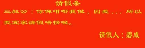 引用:原文由 JH2236 发表:碧咸你要嘅请假条screen.width-300)this.width=screen.width-300\">[此帖子已被 JH2236 在 2005-8-22 8:20:44 编辑过]