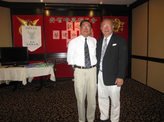 加拿大安大略省培英校友会于6月6日举行晚宴,热烈欢迎来访的蔡建中教授及美西培英校友会会长和夫人。大华府五位校友(及培英姑爺)有幸被邀出席晚宴。相见旧同学,认识新朋友,載歌載舞,整个晚宴充满热闹欢乐气氛。晚宴筵开八席,菜式丰富,席间互相祝酒,共祝大家身体健康,共祝安省校友会会务昌盛,共祝绿白精神世代相传。