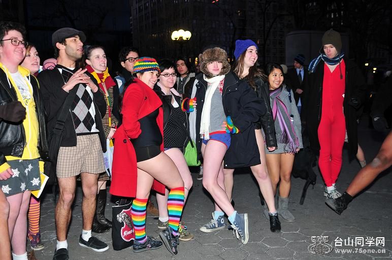 我想应该是no trousers ’s day吧.不穿(长)裤子!这些年轻人在这么冷(-5°c)的