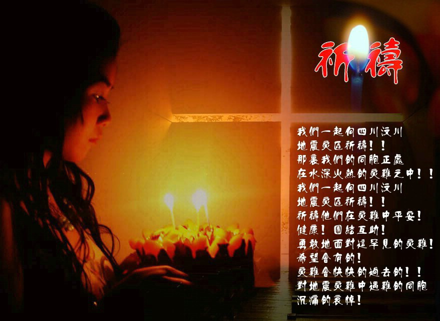 让我们一起祈禱\...祝愿灾區人民能早日恢复!为死难者默哀,为中國祈禱\!让我们为祖國为灾區人民祈禱\!祝福我们的祖國和人民平平安安!