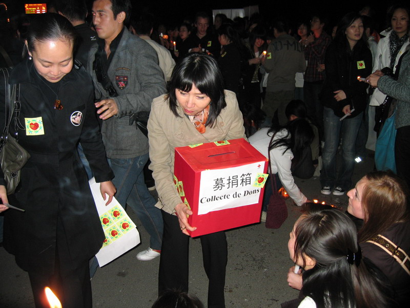 她亲自拿起募捐箱筹款。